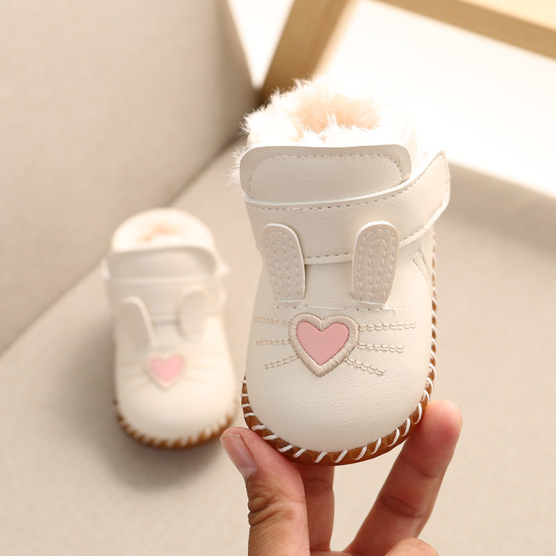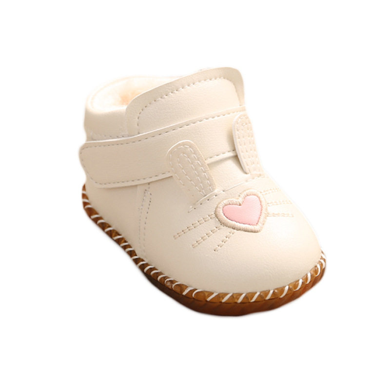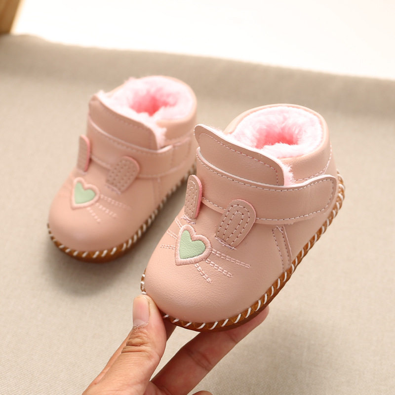 女宝宝公主学步鞋0-2岁1保暖魔术贴棉鞋冬季加绒婴儿皮鞋软底童鞋