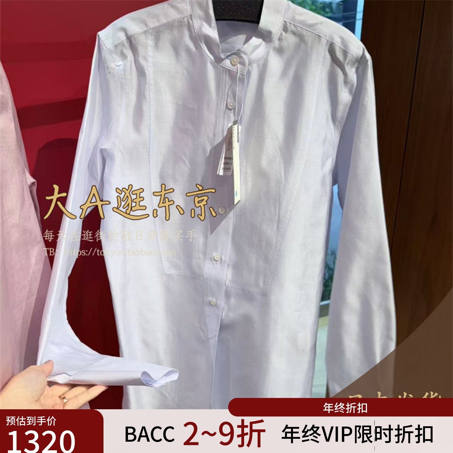 VIP5折大A逛东京Bacca日本代购 100%真丝立领长袖衬衫上衣2色