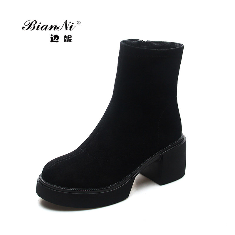 BIANNI厚底粗跟短靴时尚百搭女靴
