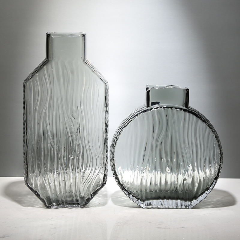 现代创意轻奢水i波纹玻璃花瓶摆件可水培插花花器客厅餐桌装饰摆