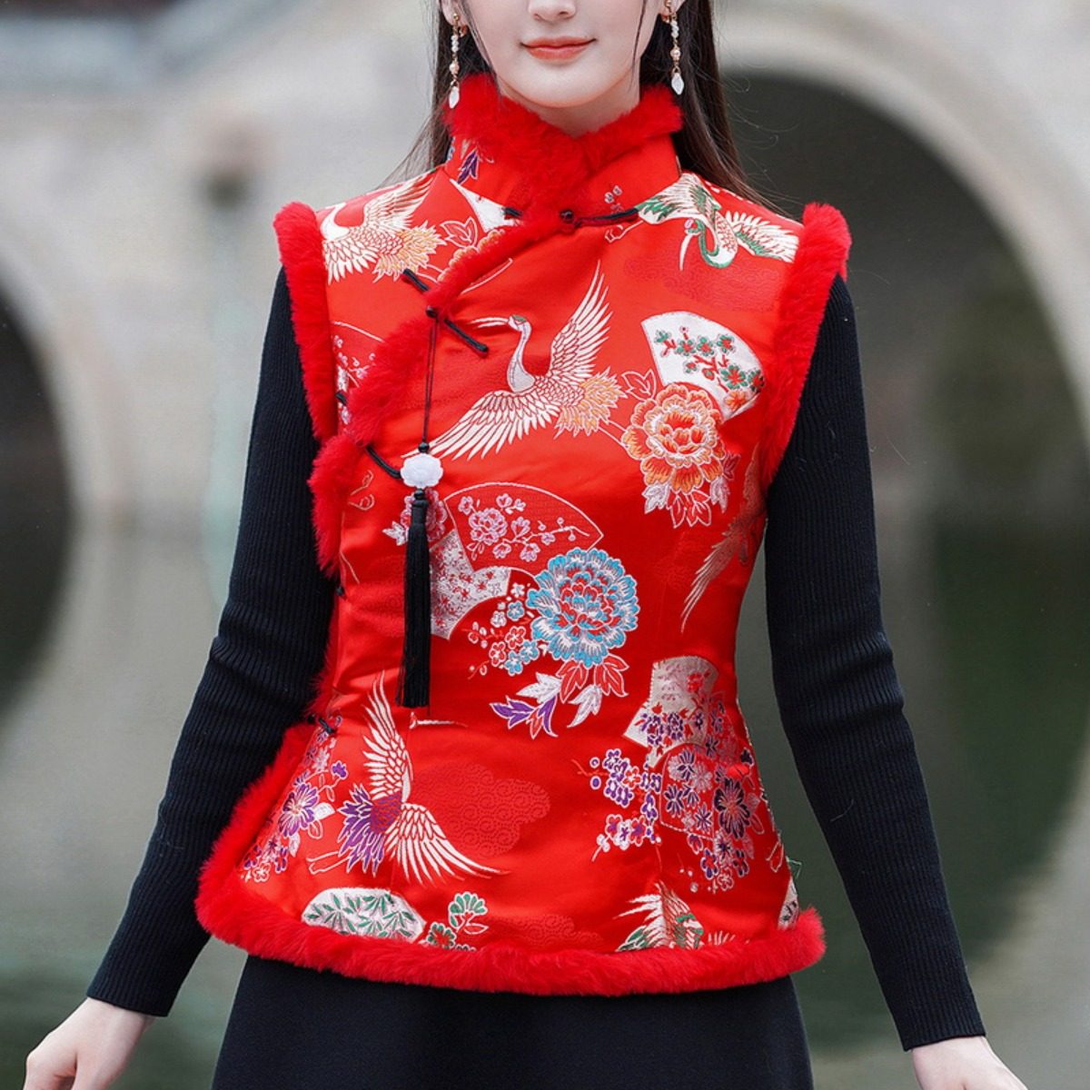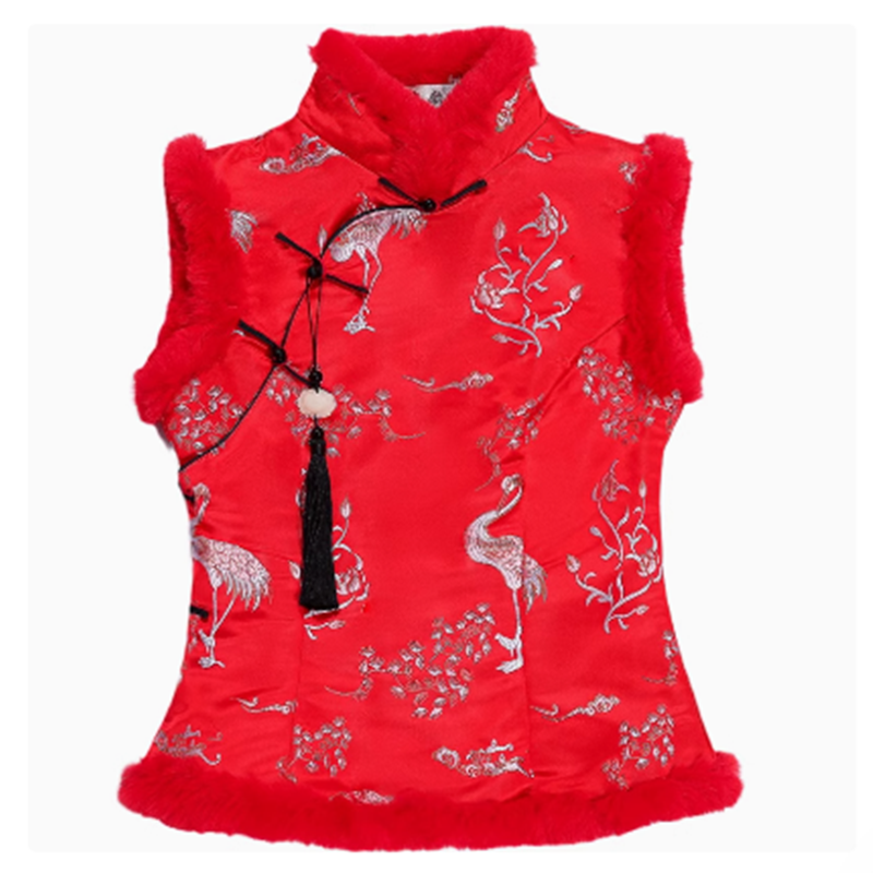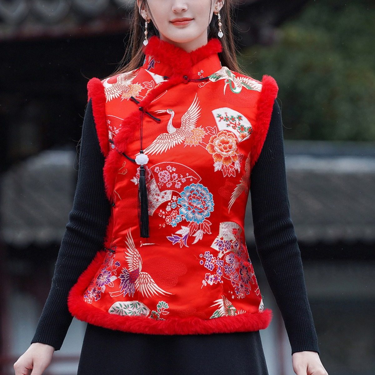 过年红色旗袍复古唐装棉服背心马甲短外套冬季汉服中国风女小棉袄