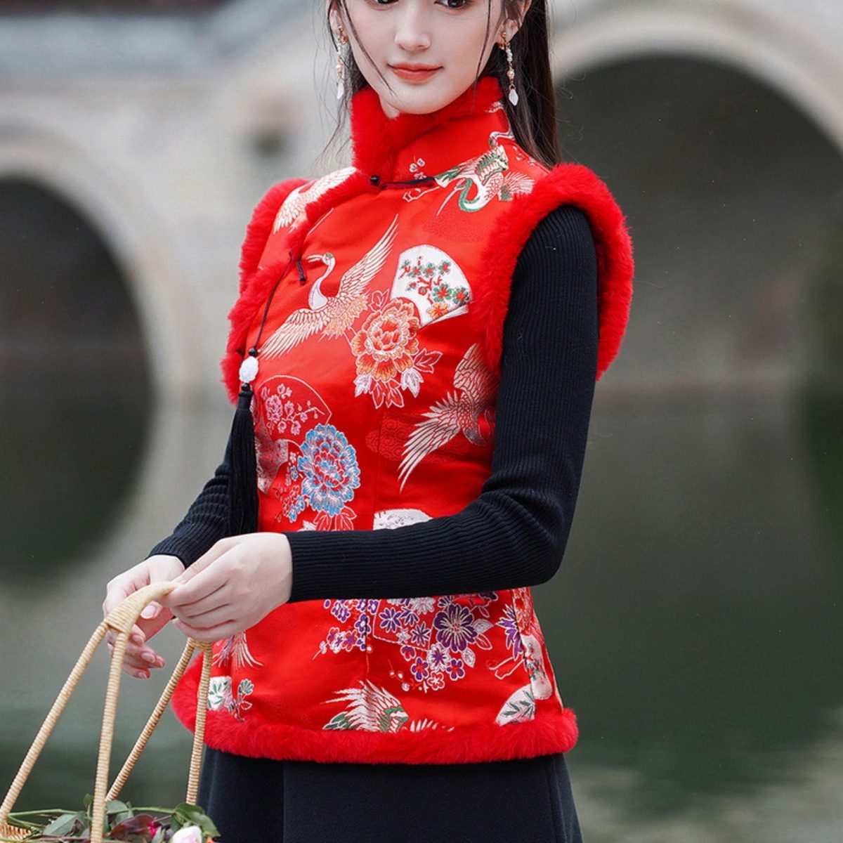 过年红色旗袍唐装棉服背心马甲