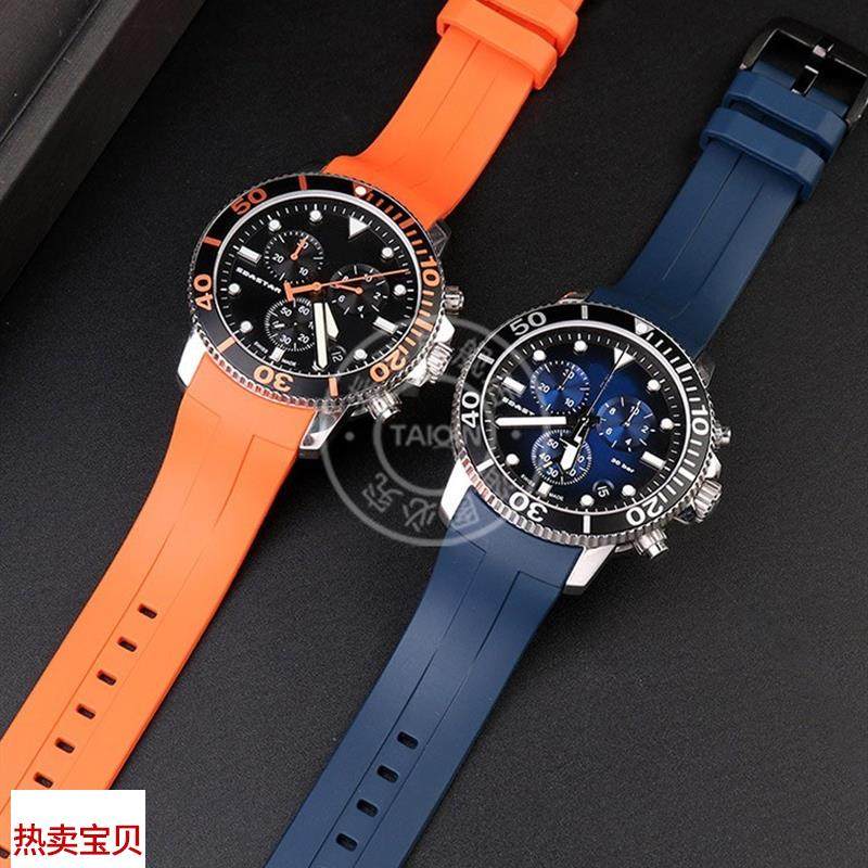 适用原装泰琴天梭海星系列T120.407表带T120.417A橡胶手表带2122m