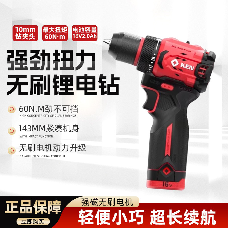KEN锐奇2025新款7316X手电钻小钢炮16V无刷锂电手枪钻专业充电钻