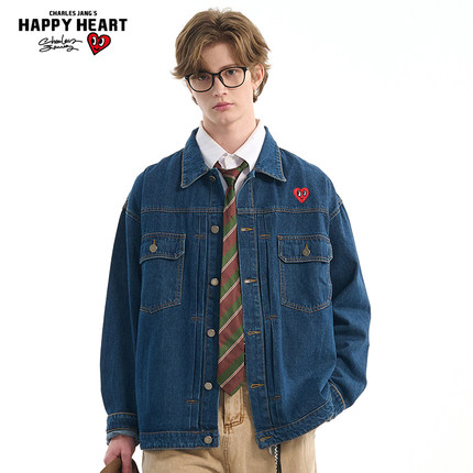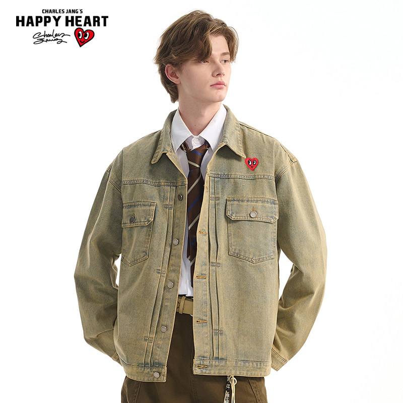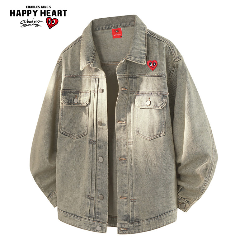 查尔斯桃心复古工装牛仔夹克男