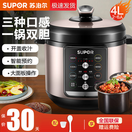 苏泊尔电压力锅4L电高压饭煲双胆全自动智能家用饭锅新款官方正品