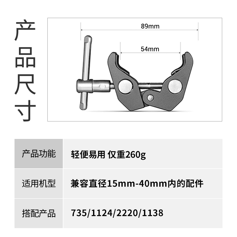 SmallRig斯莫格 相机配件蟹钳夹单反管夹微单配件单电夹蟹钳 2058