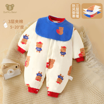 婴幼儿夹棉保暖连体哈衣服秋冬季