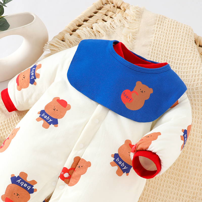新生儿连体衣保暖加厚口水巾秋冬男女宝宝棉服哈衣婴儿夹棉外出服