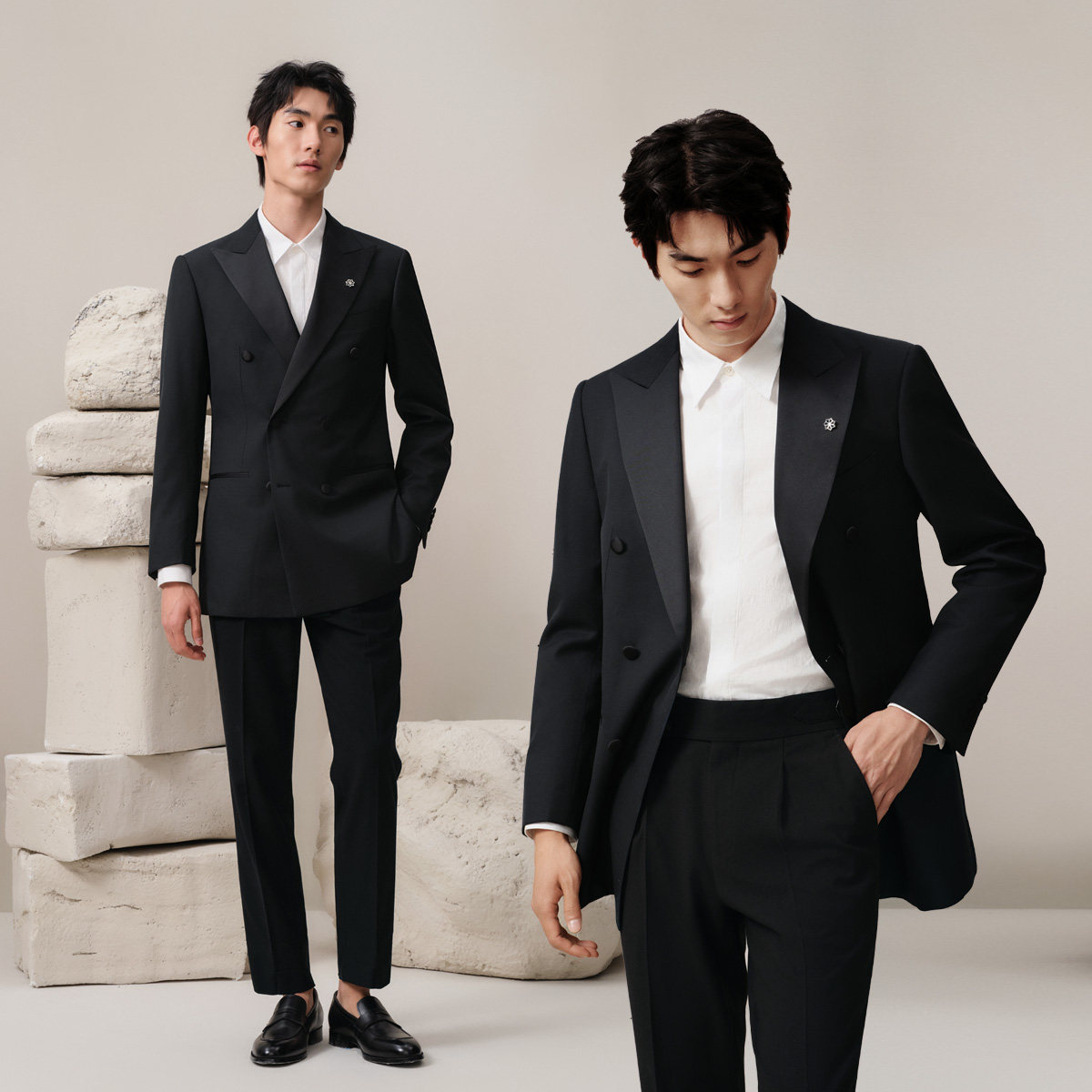【塔士多】吉约蒙羊毛双排扣西装男套装黑色新郎结婚礼服高级西服