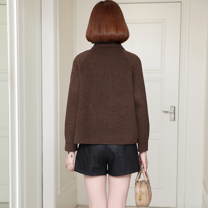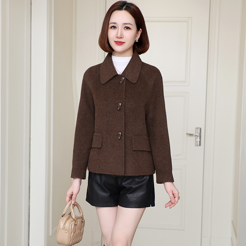 新款双面绒大衣女短款娃娃领收腰羊毛呢小个子中老年妈妈外套秋冬