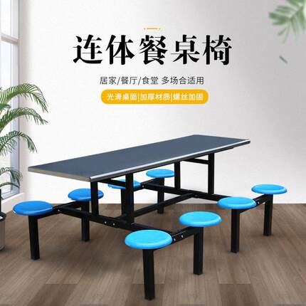 不锈钢餐桌椅食堂餐桌椅4人6人8人学校学生员工连体快餐桌椅组合