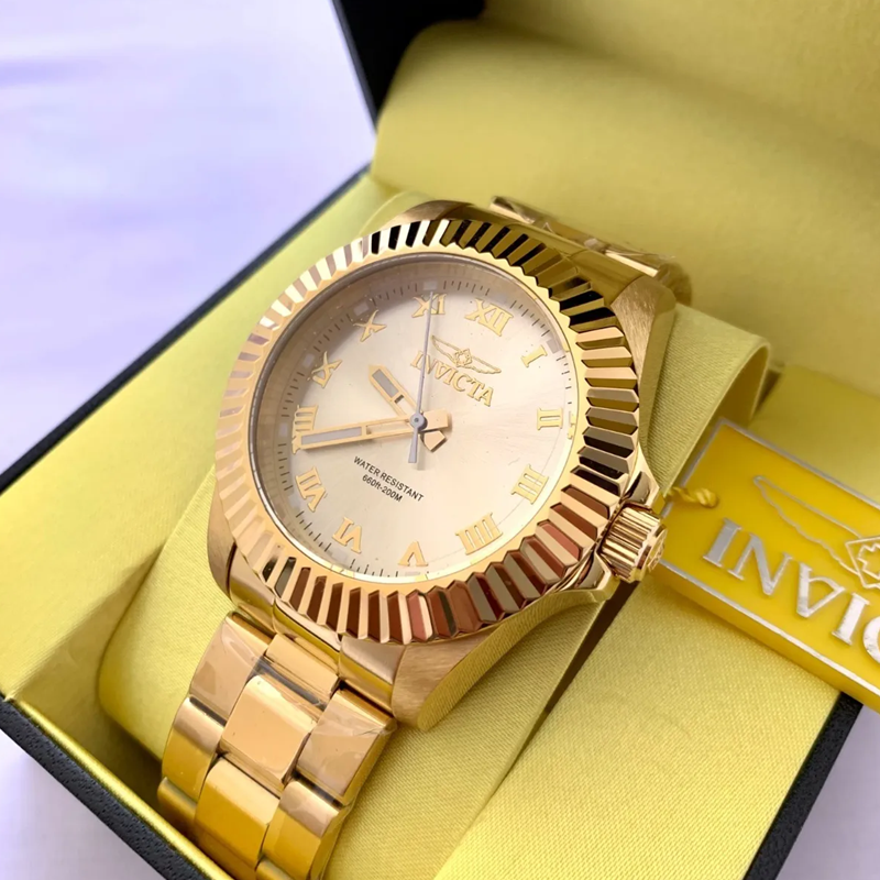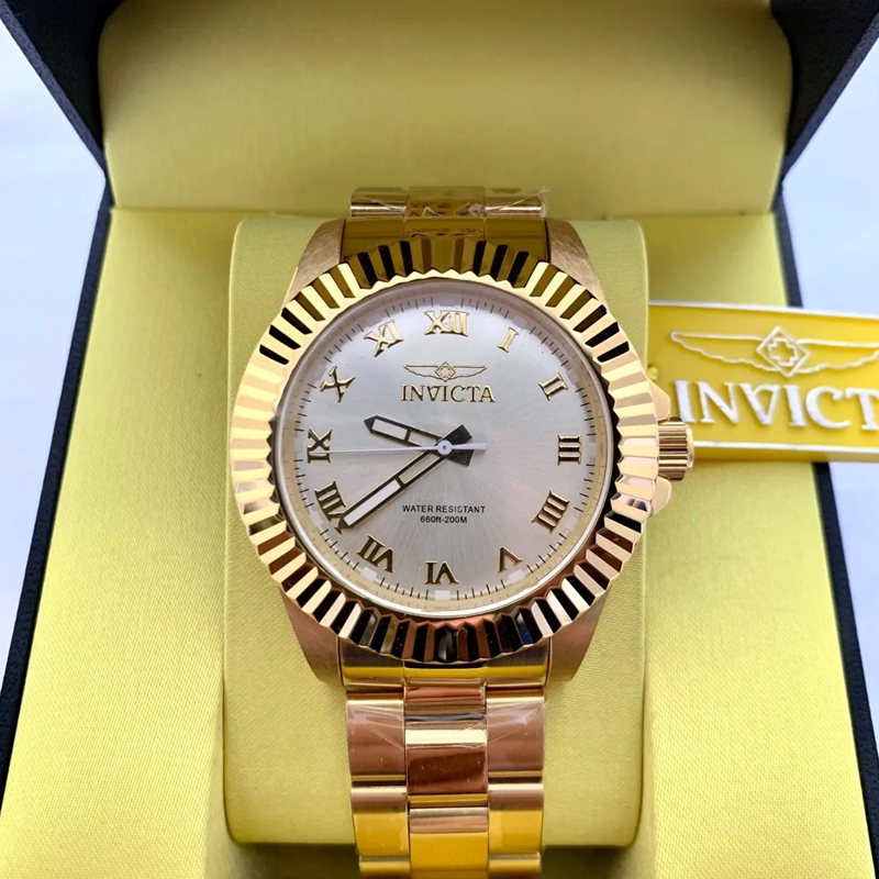 代购Invicta男表因维克塔一米劳18K土豪金钢带夜光防水石英手表1