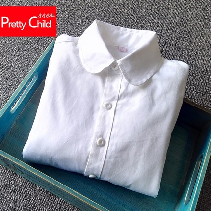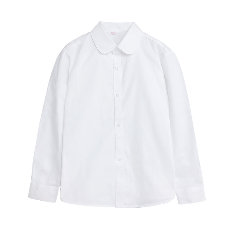 儿童白衬衫女童长袖纯棉加绒加厚保暖白色衬衣中大童学生校表演服