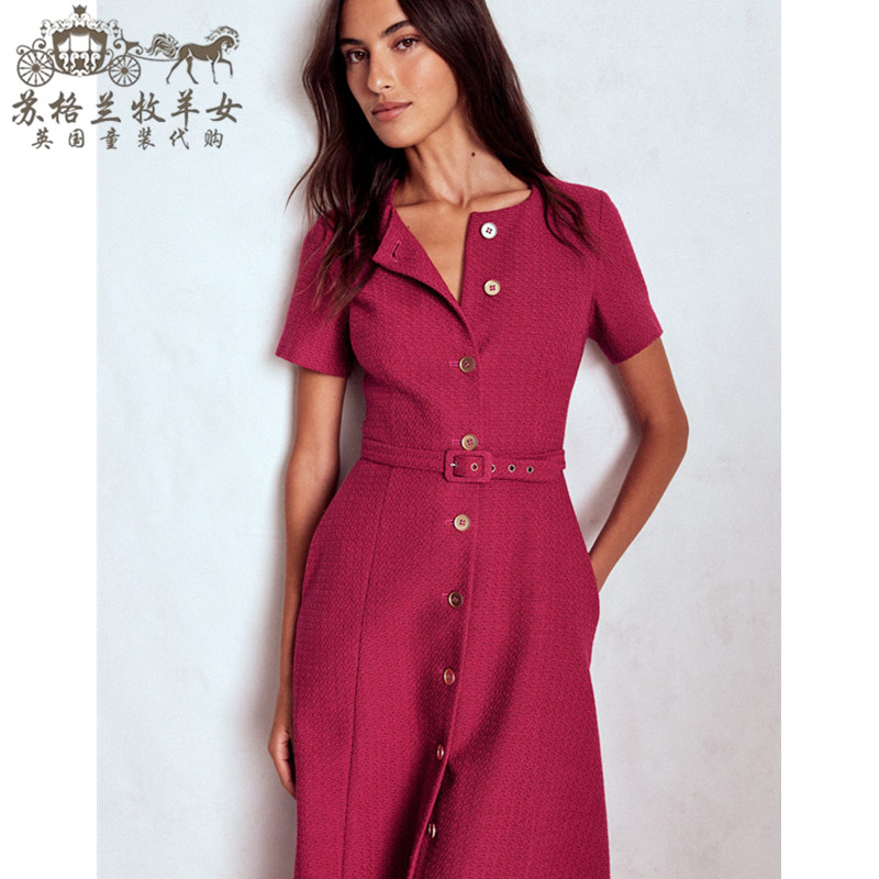 英国Boden代购 女装25秋冬新款 英伦显瘦短袖休闲中长裙连衣裙子
