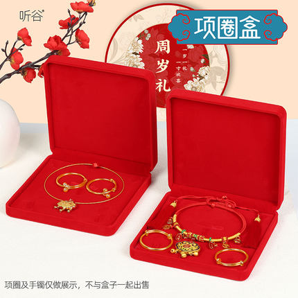 项圈首饰收纳盒绒布珠宝首饰包装盒满月百天婴儿长命锁金银手镯盒