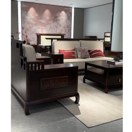 高博铭品新中式乌金木沙发1+2+3成套储物家具客厅轻奢雕花不包邮