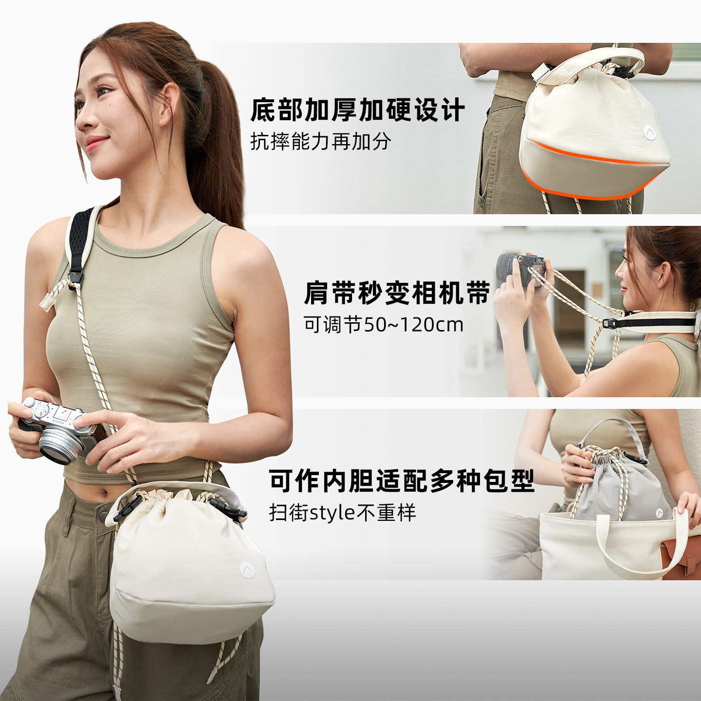 阿尔飞斯烧麦包单肩斜挎微单相机收纳包适用拍立得佳能富士内胆包便携手提镜头保护包女数码相机袋单反摄影包