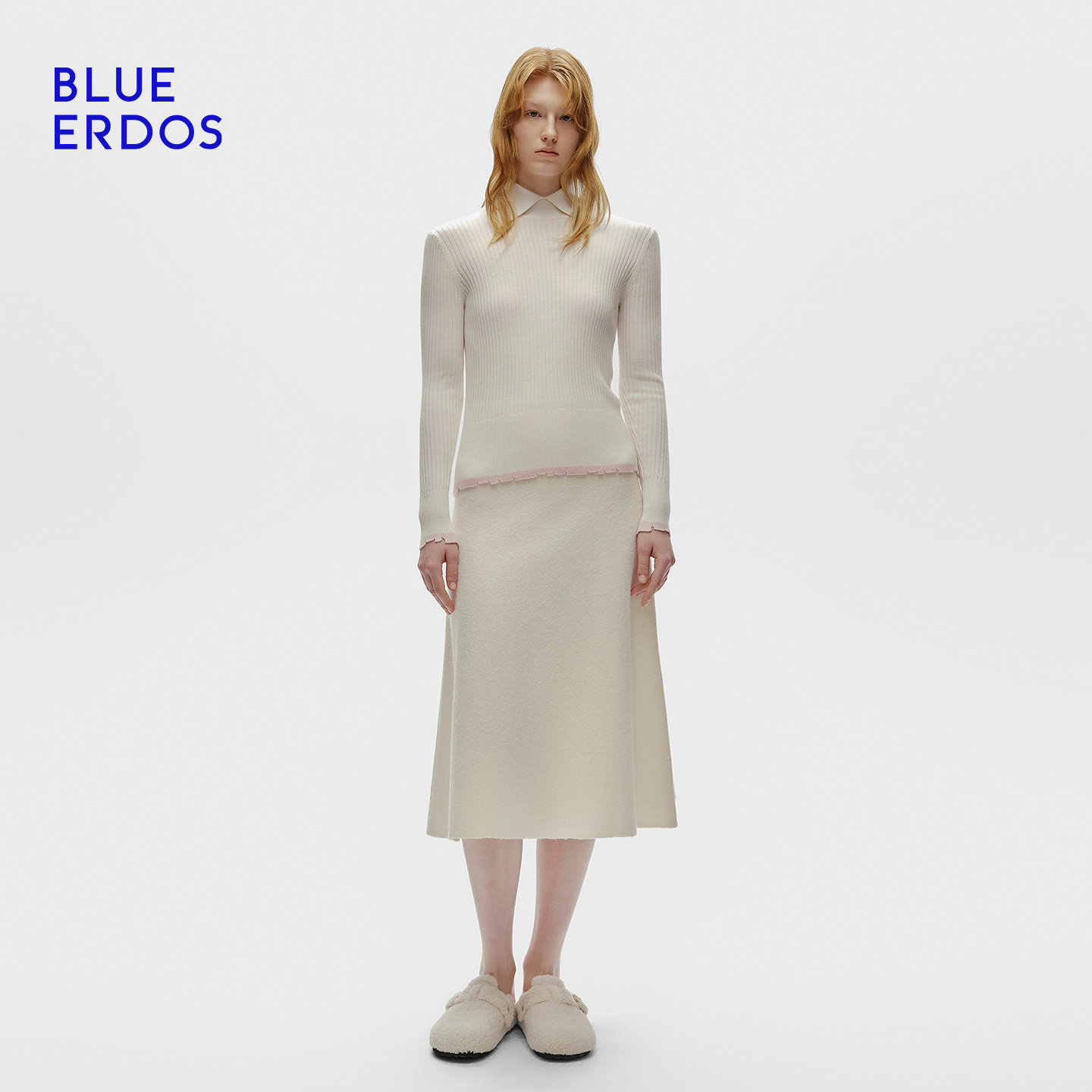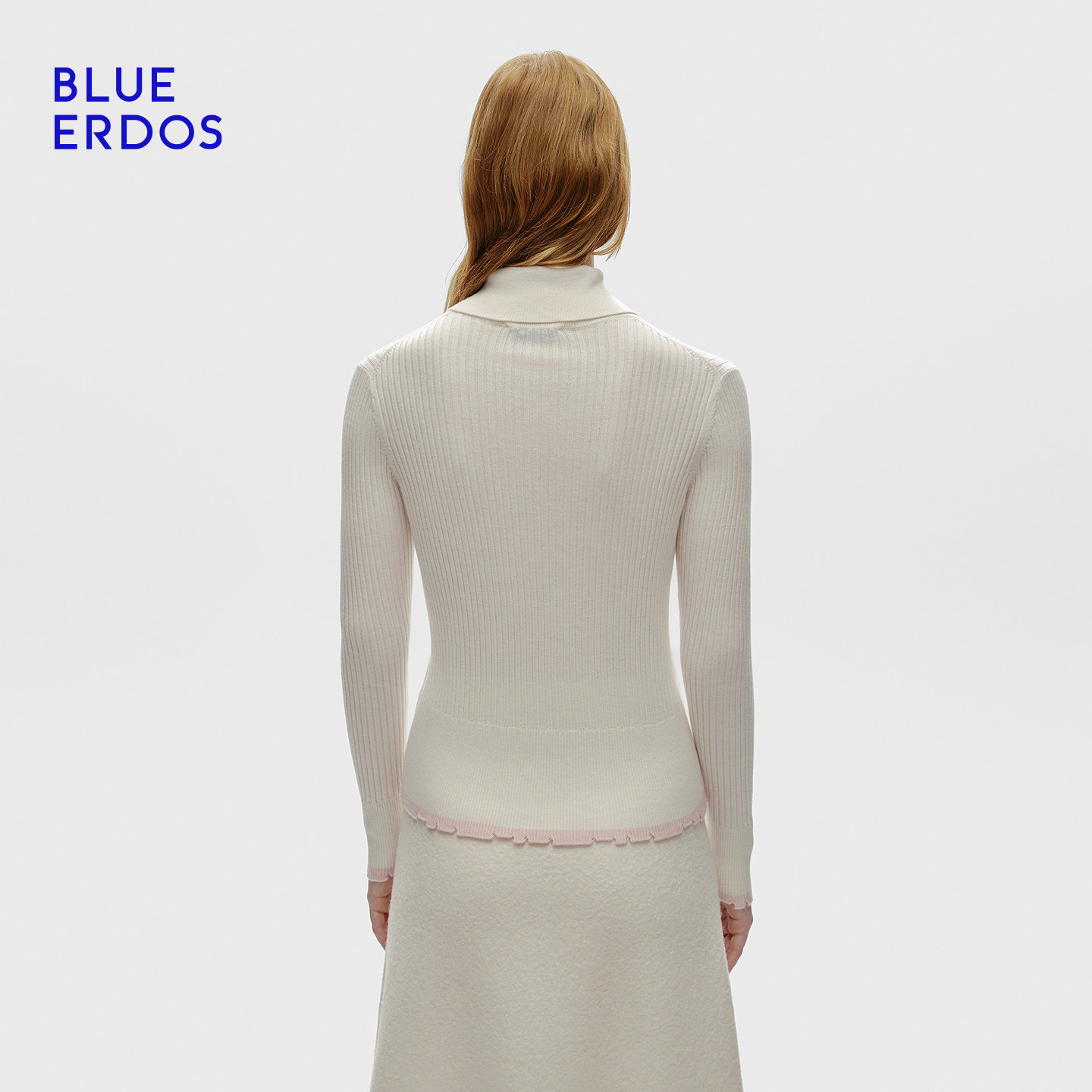 BLUE ERDOS冬季新品简约百搭羊毛羊绒正肩翻领针织衫B256A0057
