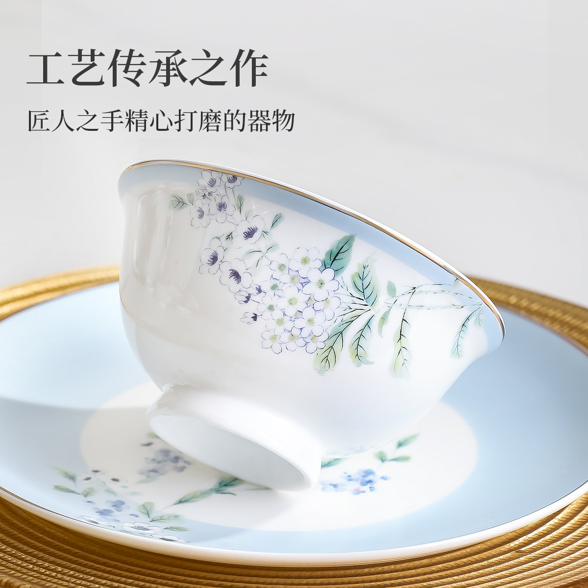 松发瓷器中式陶瓷餐具套装高温烤花家用碗盘碟套装送礼乔迁礼盒装