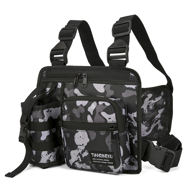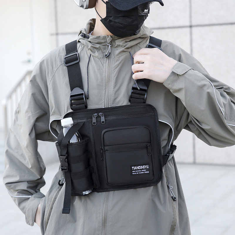 户外出行马甲背心包男士军迷战术野营胸包便携放手机水杯一体包