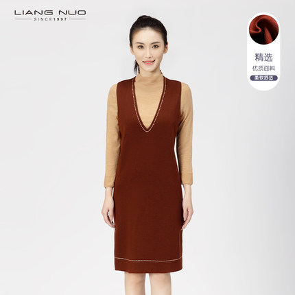 靓诺绵羊毛混纺修身背心裙V领