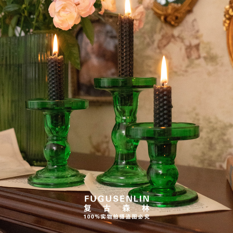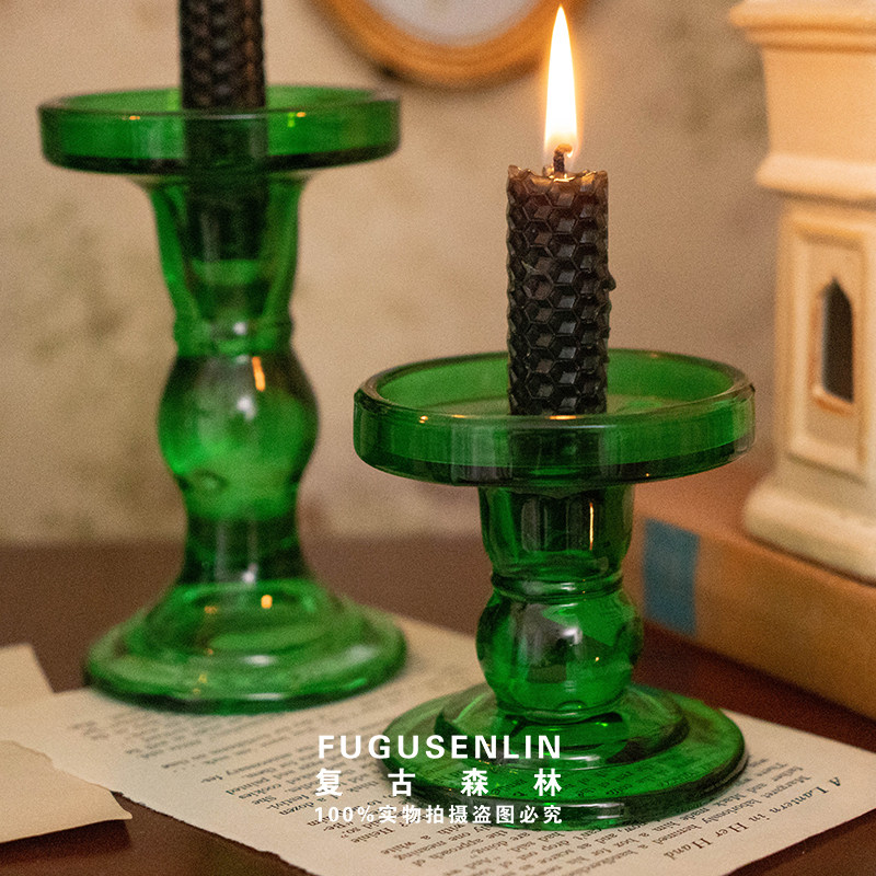 韩国ins复古个性小众绿色玻璃烛台家居民宿软装饰摆件拍摄道具