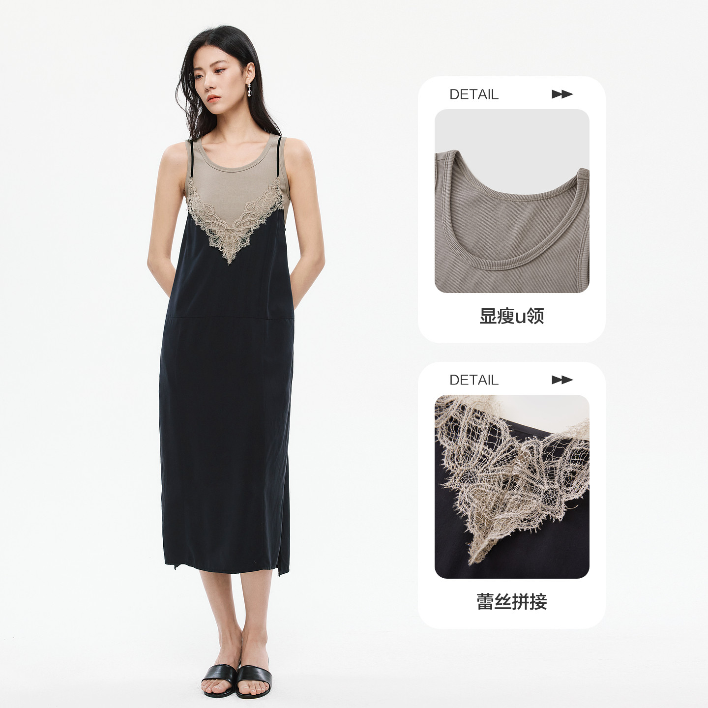 水云间H型背心连衣裙女蕾丝边吊带裙子松弛感时髦精穿搭2026新款