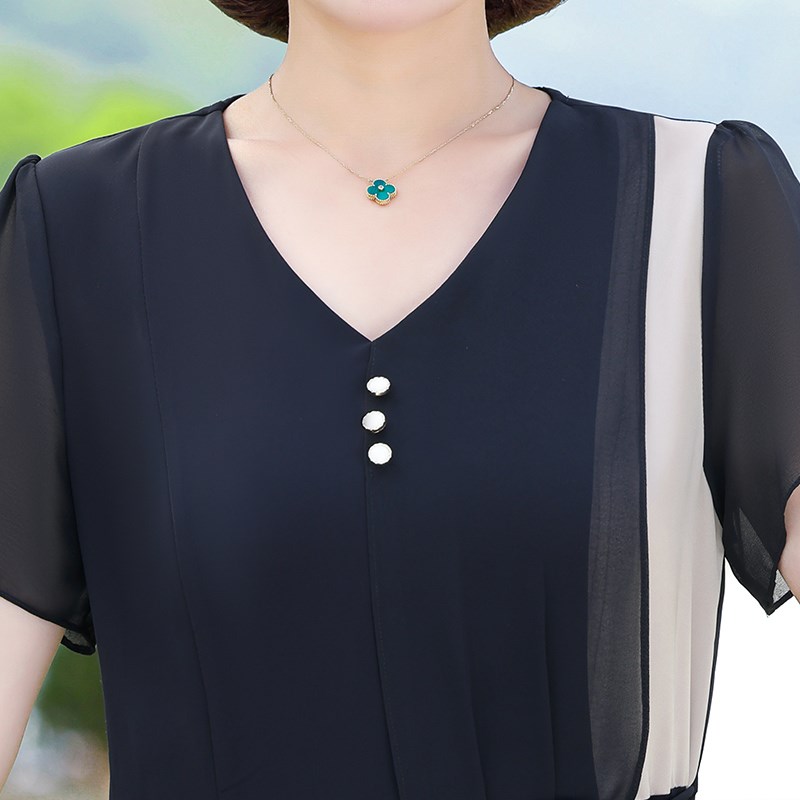 中年妈妈夏装雪纺连衣裙洋气2024新款中老年女夏季贵妇人气质裙子