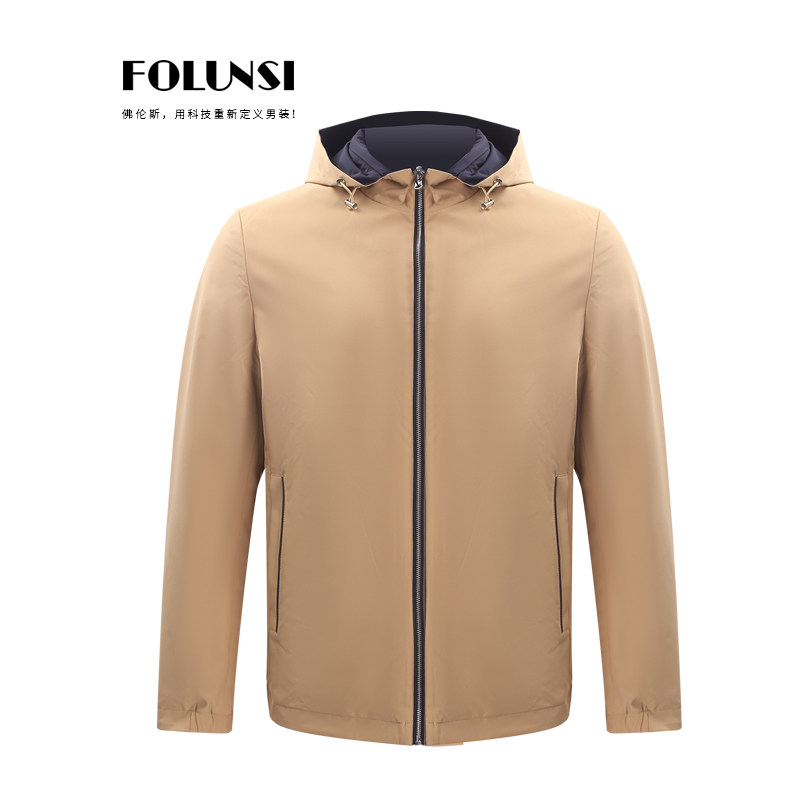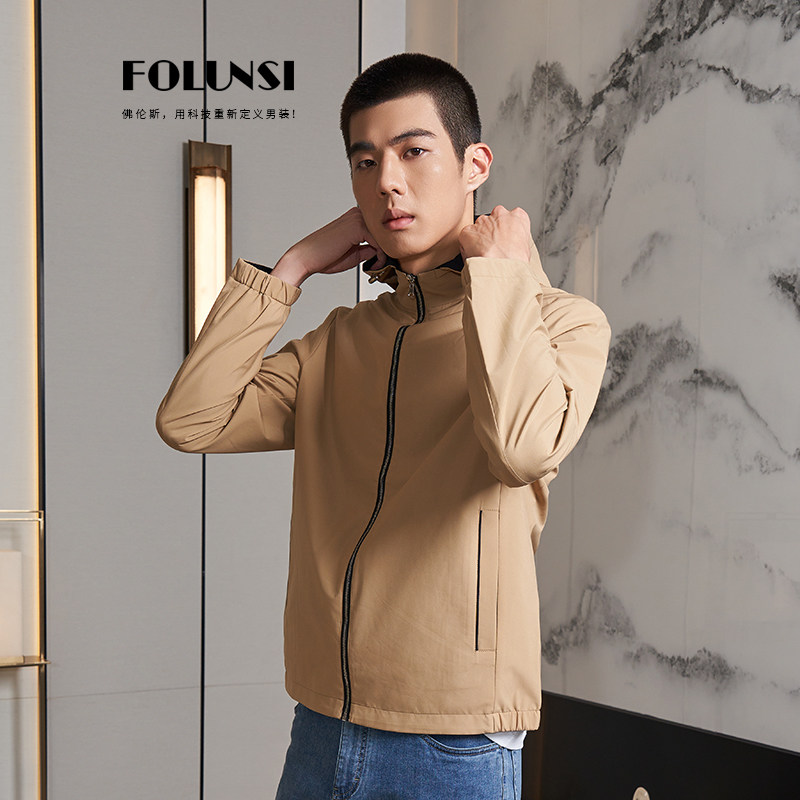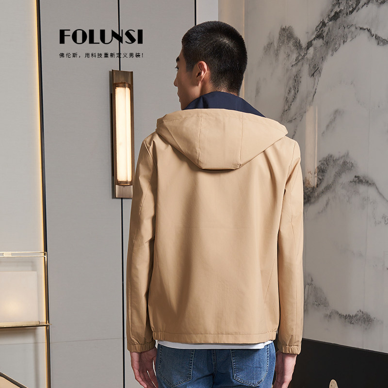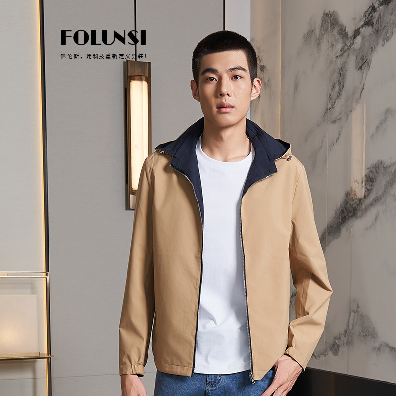 佛伦斯FOLUNSI新款2024秋季休闲夹克双面可穿男士可拆卸帽茄克