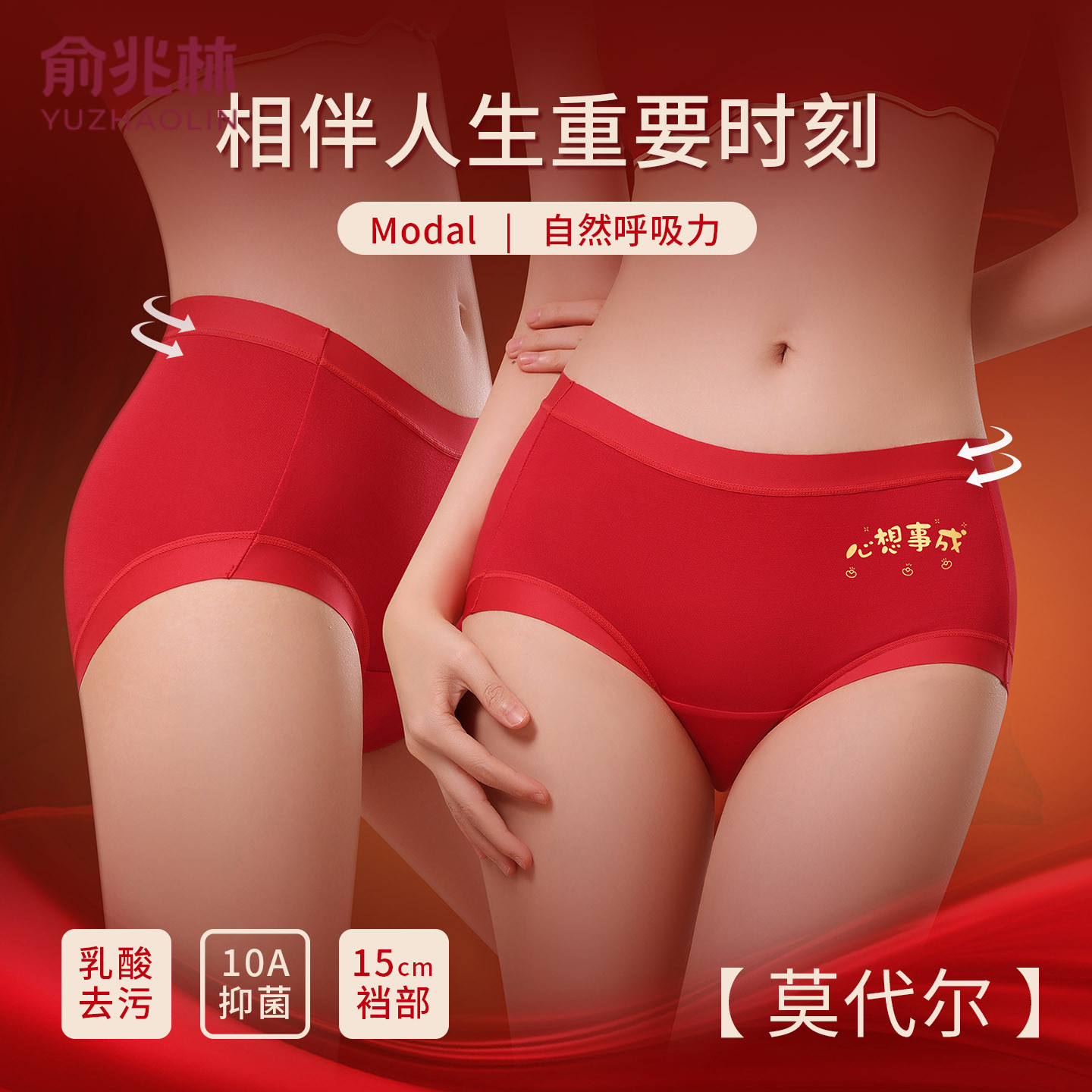 俞兆林4条装莫代尔红色本命年聚乳酸裆内裤女士透气三角裤多规格