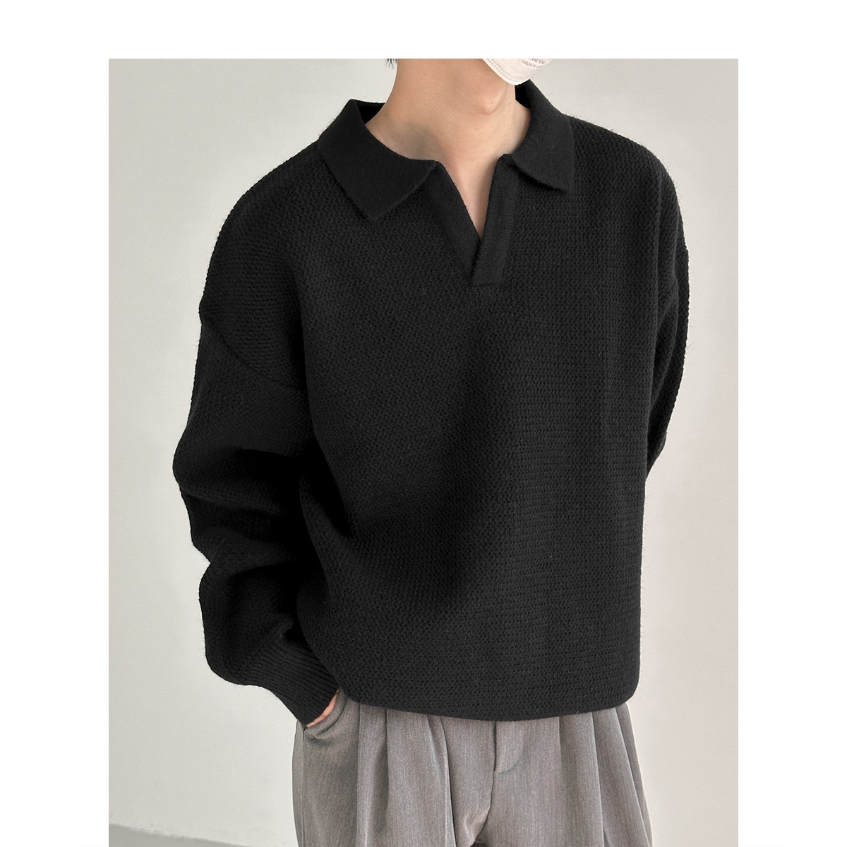 韩系慵懒风半拉链针织polo衫毛衣男秋季高级感内搭打底衫长袖上衣