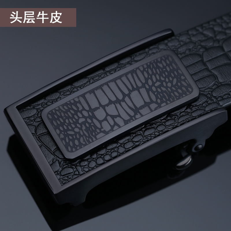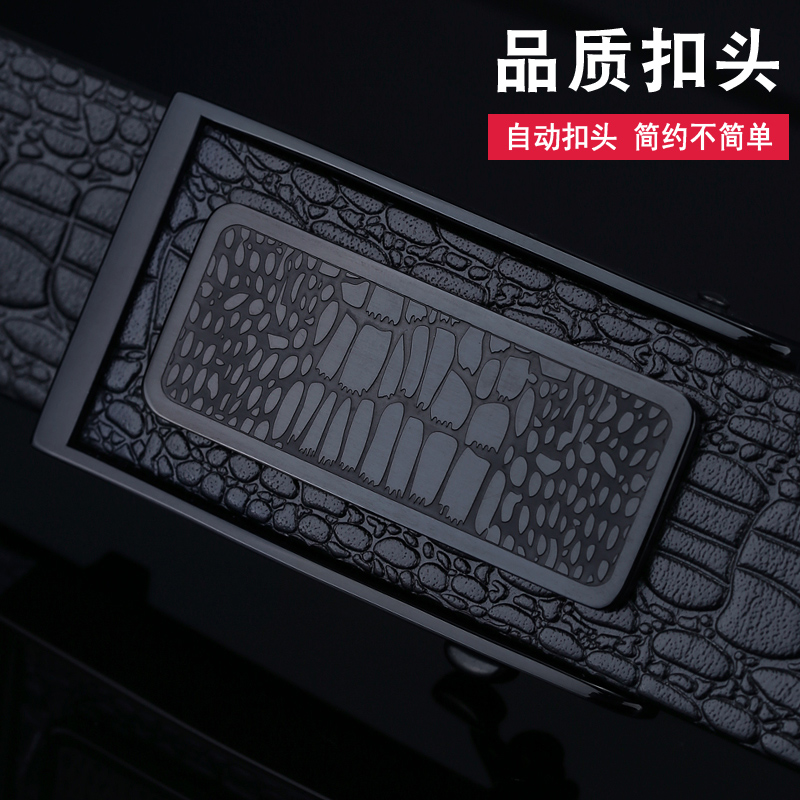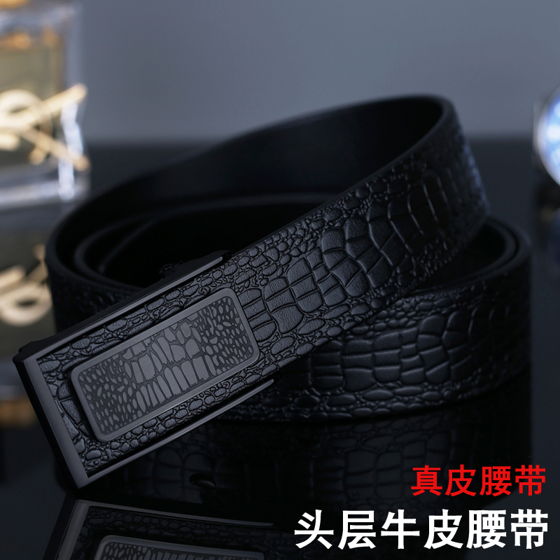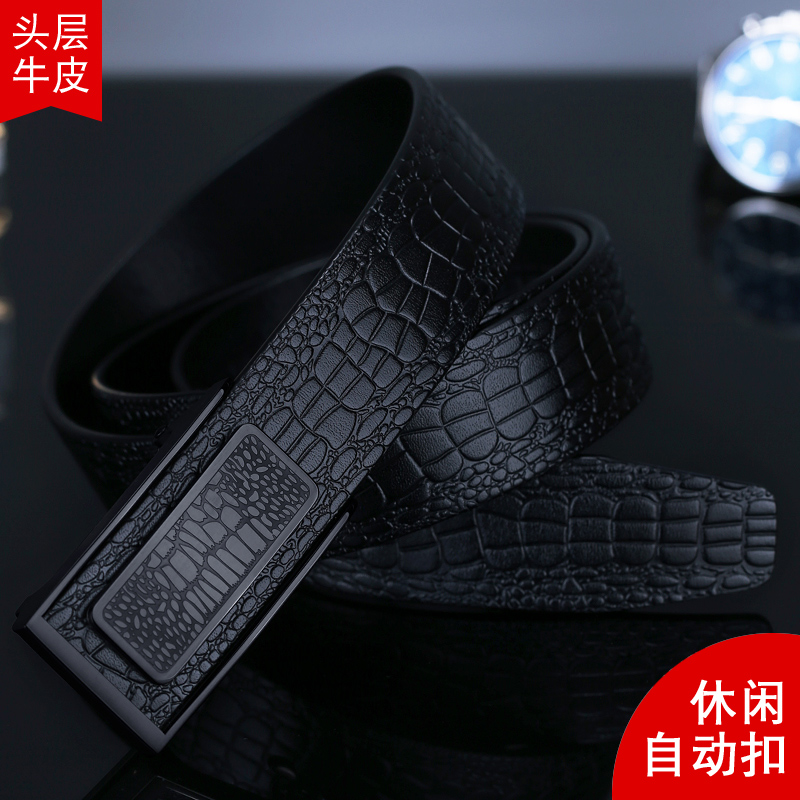 VGXOUE头层牛皮皮带男士真皮休闲商务鳄鱼纹无牙自动扣青年裤腰带