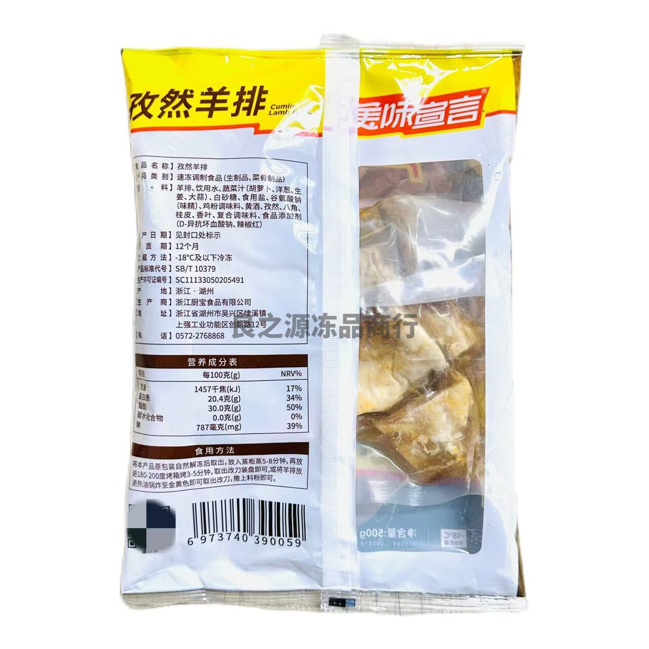 厨宝孜然羊排5包*500g腌制羊肉烧烤羊排羔羊排羊肋排酒店半成品