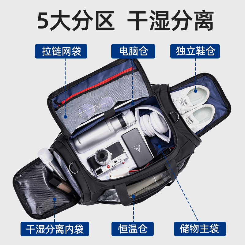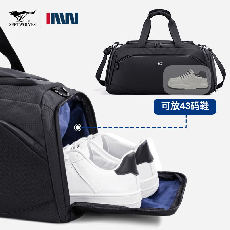 七匹狼男士旅行包短途旅行大容量便携手提背包干湿分离运动健身包