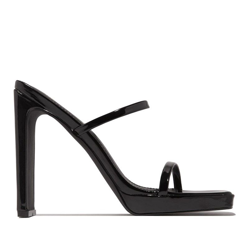 凉鞋女厚底粗跟一字带2024年夏黑色漆皮方头透明简约防水台高跟鞋