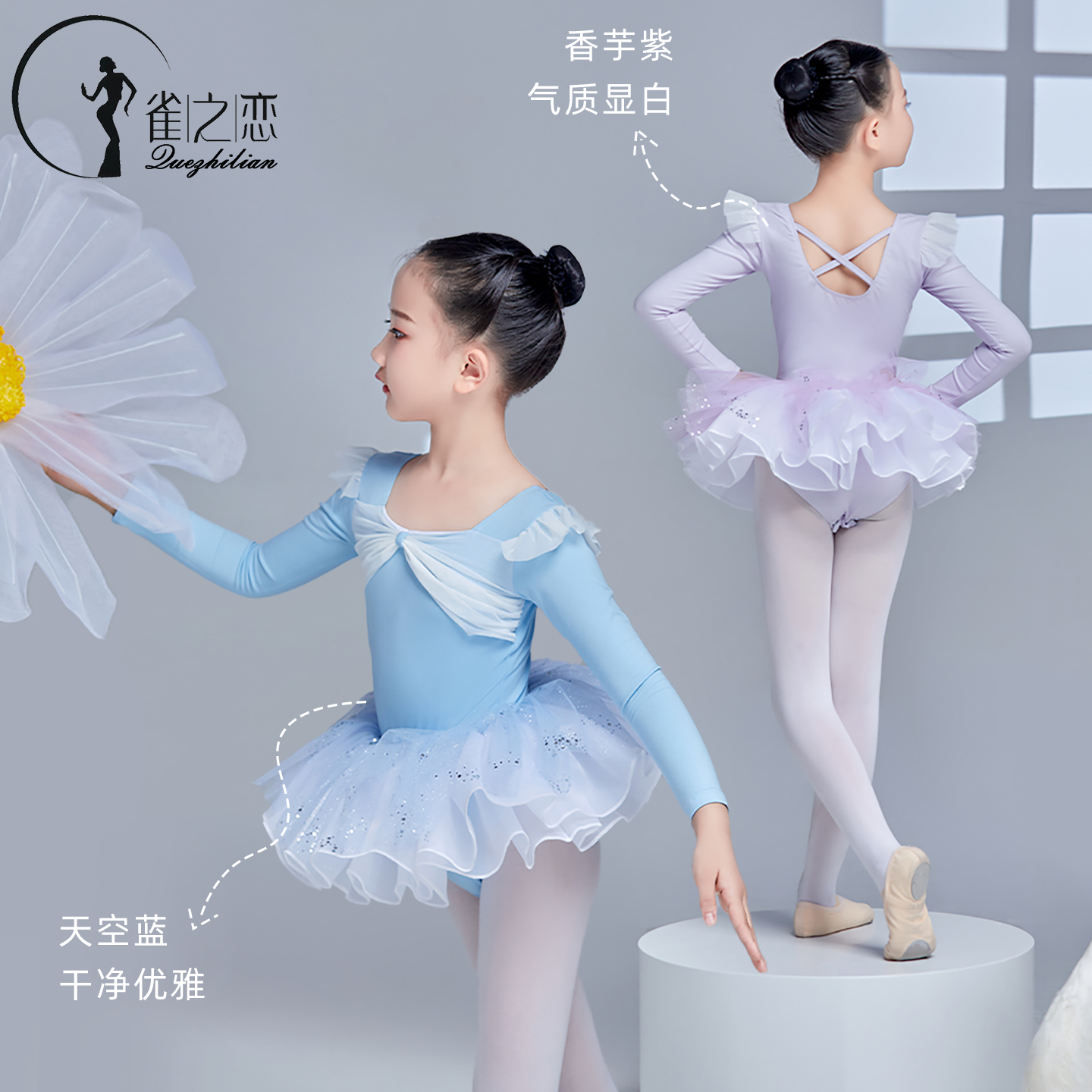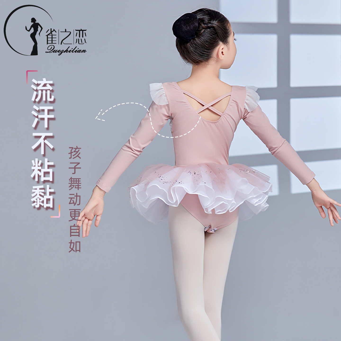 舞蹈服儿童女秋天芭蕾舞练功服套装长袖少儿体操服连体可爱蓬蓬裙