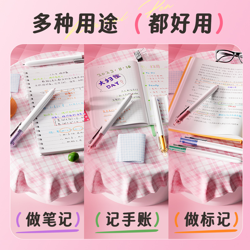 晨光文具彩色中性笔学生用彩色手账笔做笔记专用水笔0.5子弹头重点标记神器红笔圆珠笔套装蓝色粉色记号笔