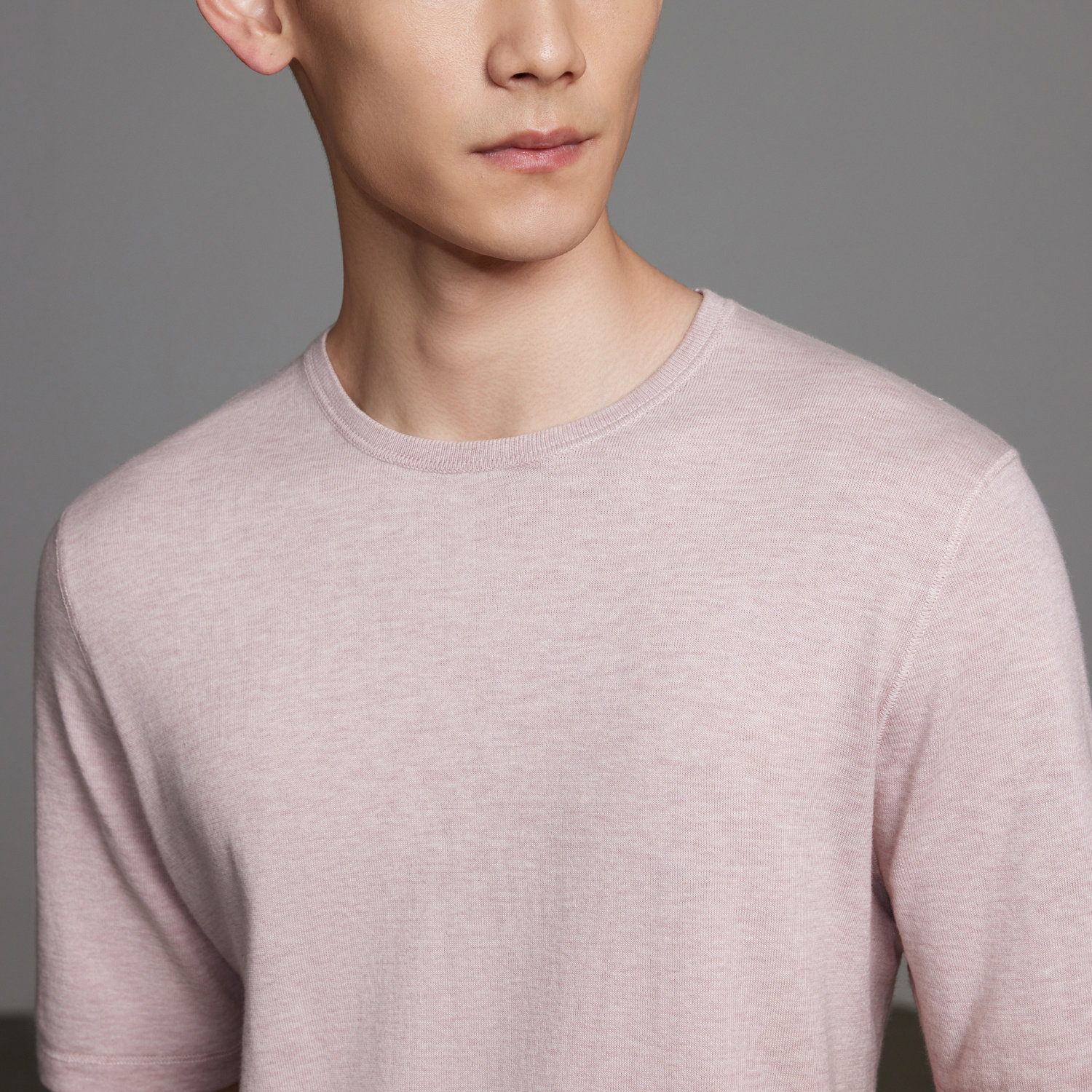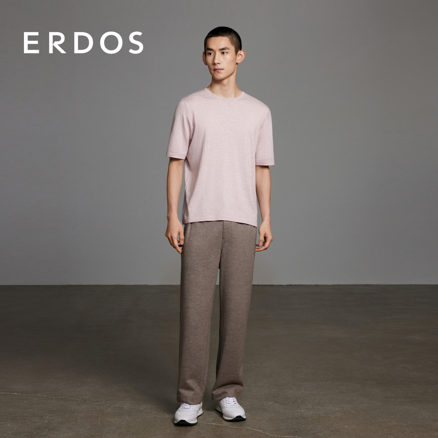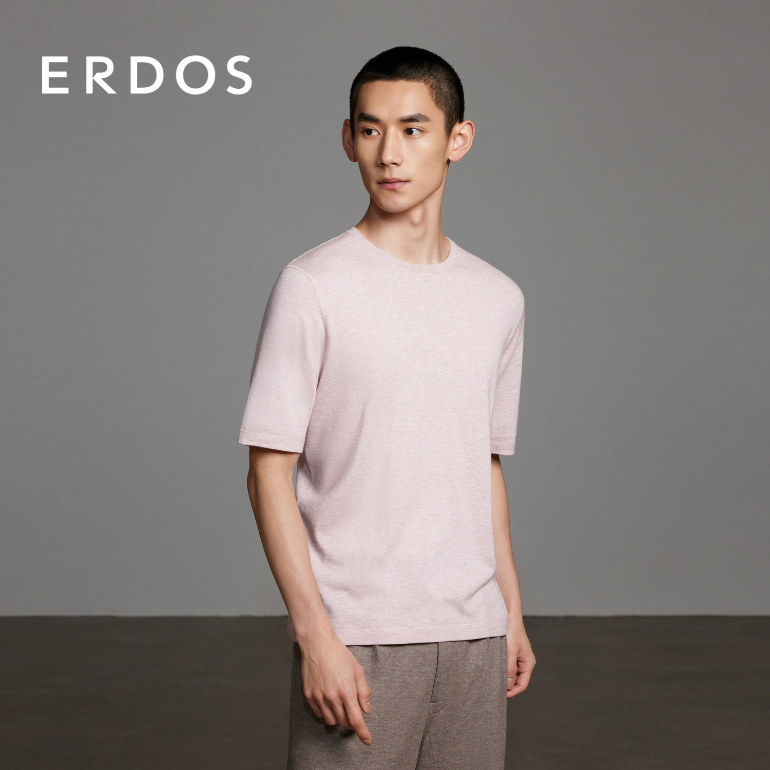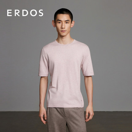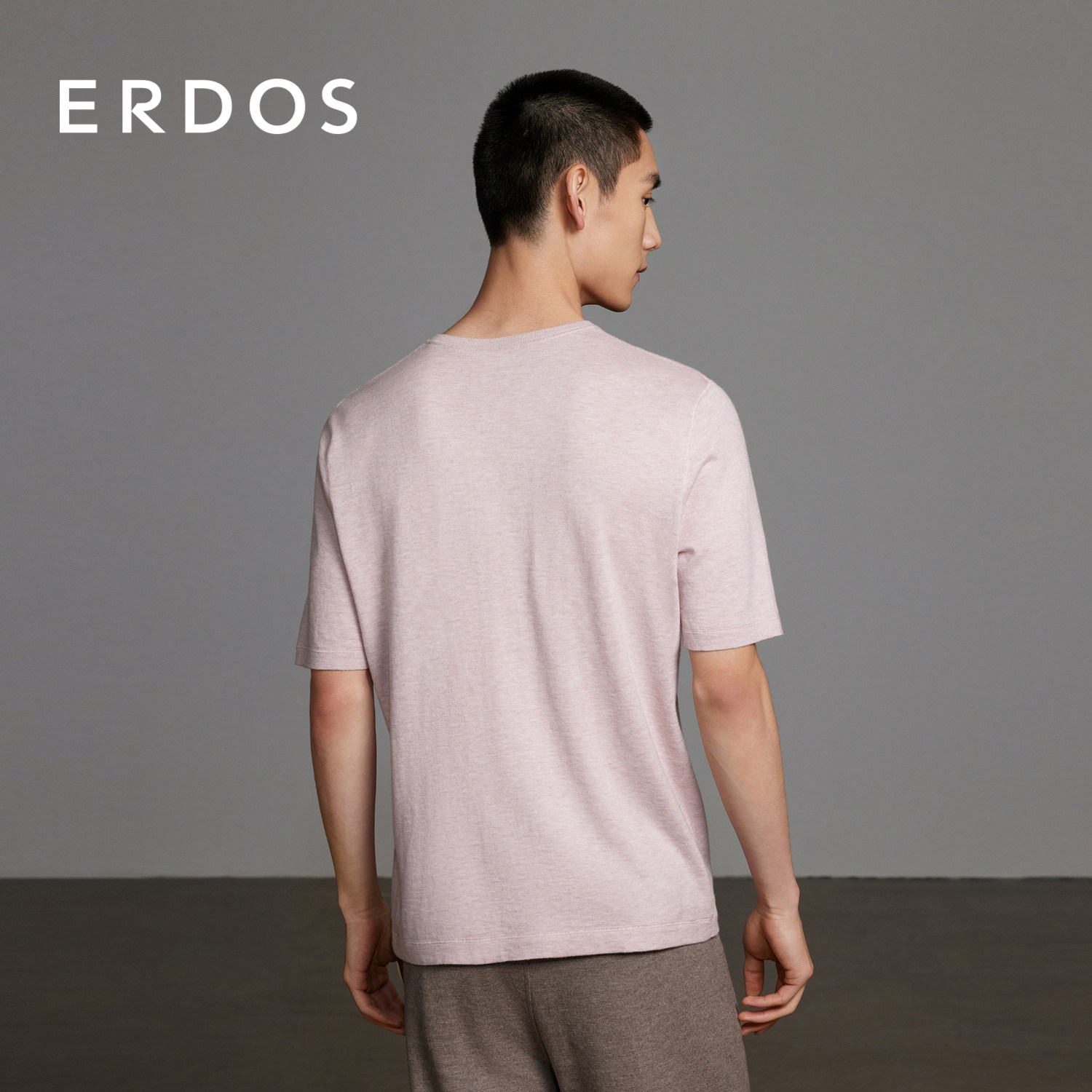 ERDOS 男装棉绒混纺T恤春季款精纺薄款短袖圆领半袖针织衫