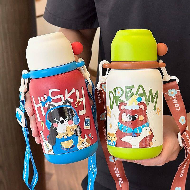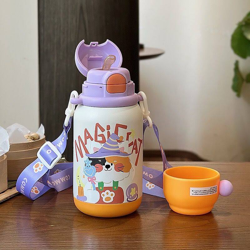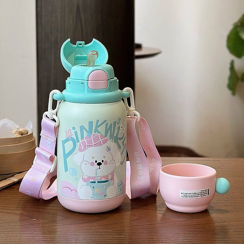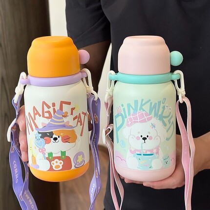 316不锈钢儿童保温杯高颜值卡通三饮口吸管杯大容量户外便携水杯