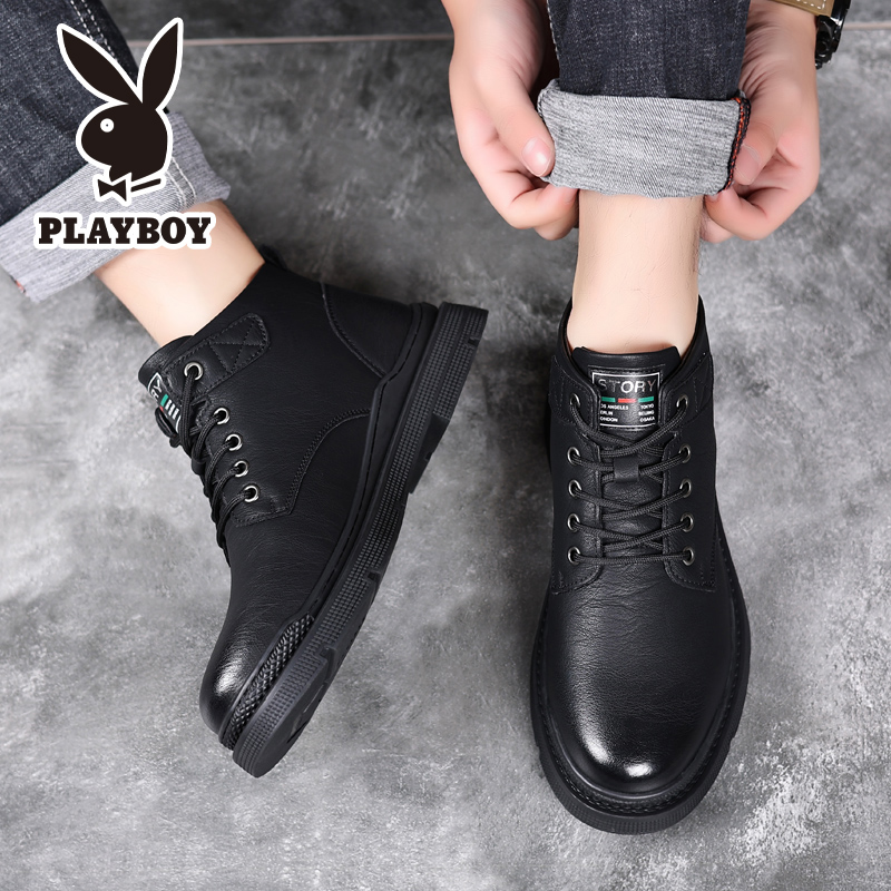花花公子马丁靴男冬季加绒棉鞋
