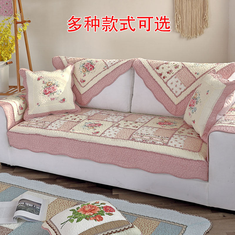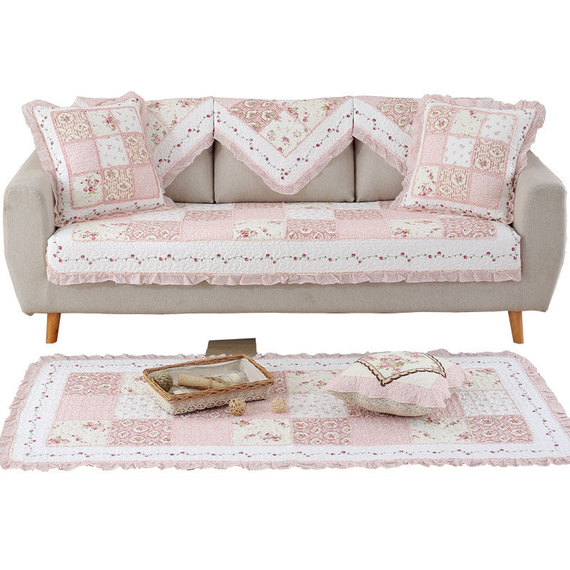 粉色公主风沙发垫花边布艺纯棉防滑四季简约现代田园小碎花沙发巾