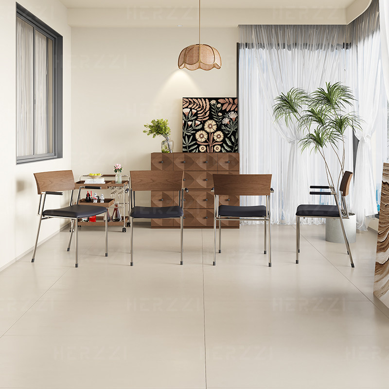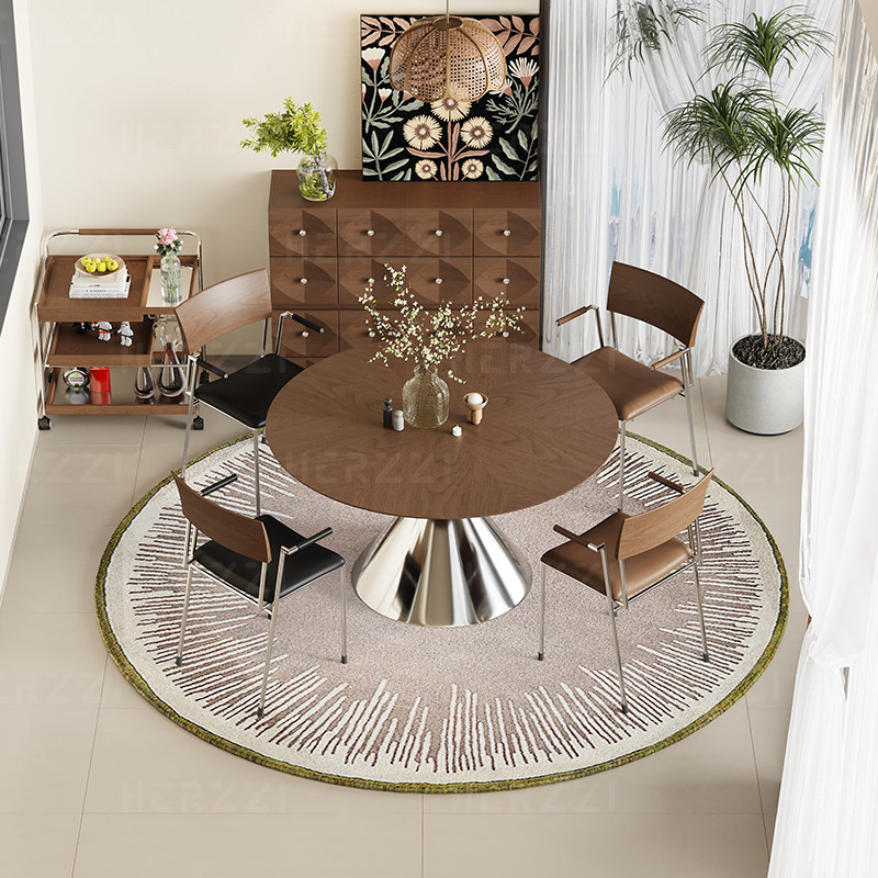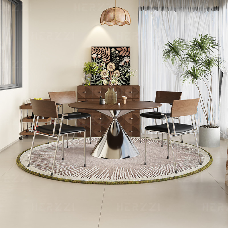 HERZZI意式极简高端不锈钢餐椅实木真皮餐椅包豪斯舒适带扶手椅子