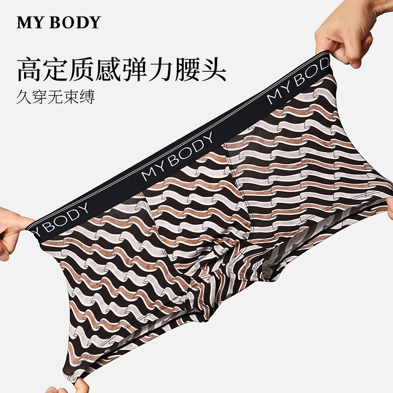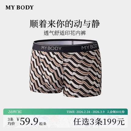 3件199|商场同款MYBODY新款男士内裤透气舒适印花平角裤四角短裤