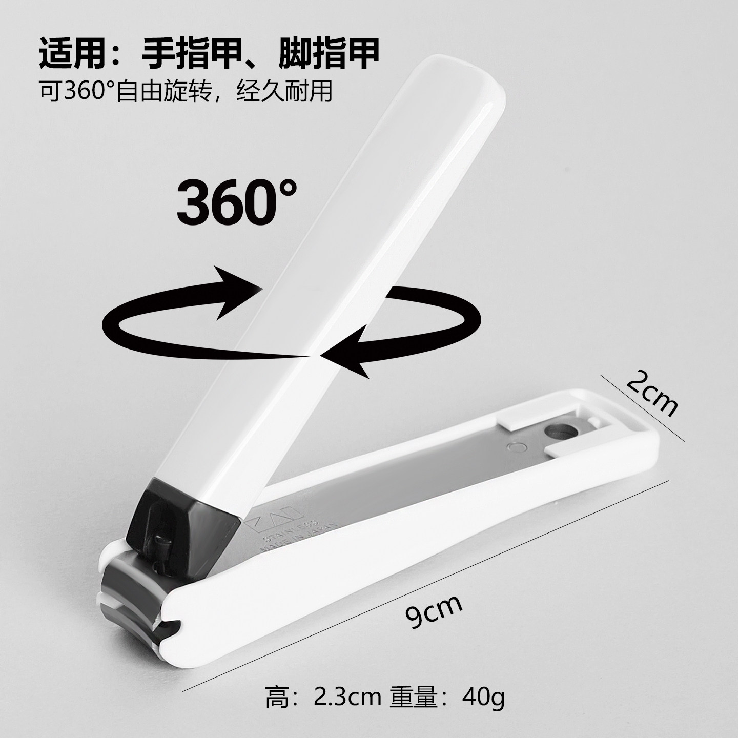 日本进口KAI防飞溅指甲剪单个高硬度抗菌指甲钳大号剪指甲工具