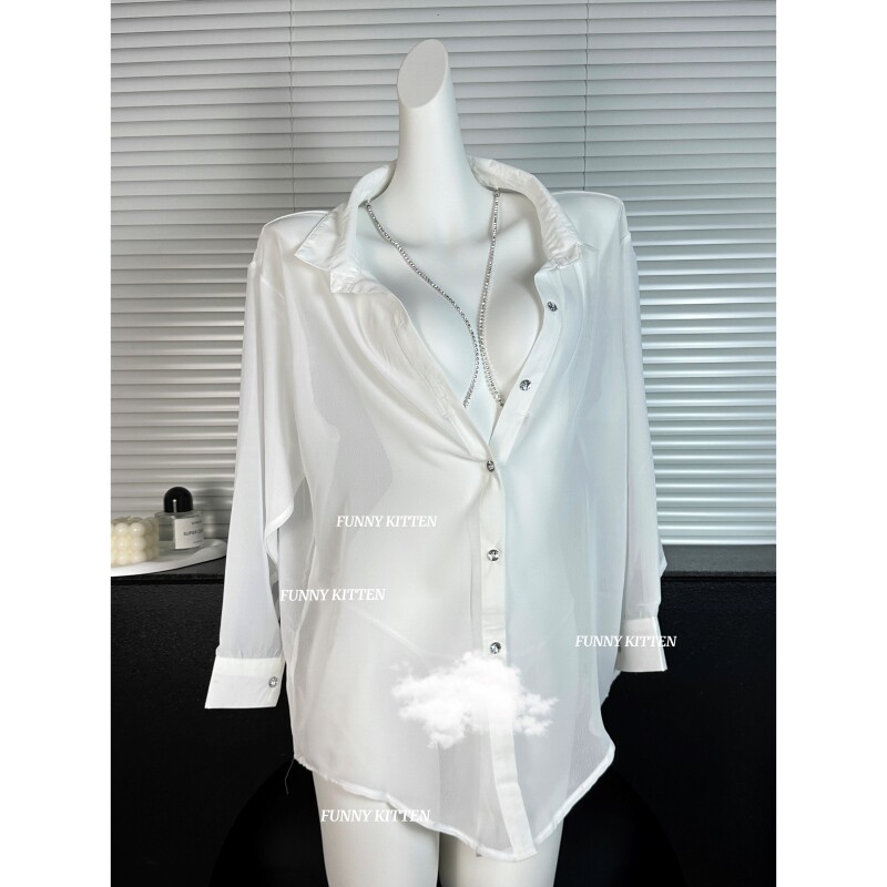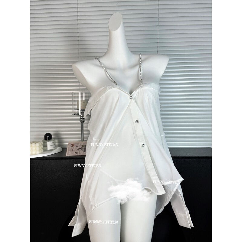 FUNNY KITTEN纯欲大码性感睡衣女透视男友风衬衫情调约会吊带睡裙
