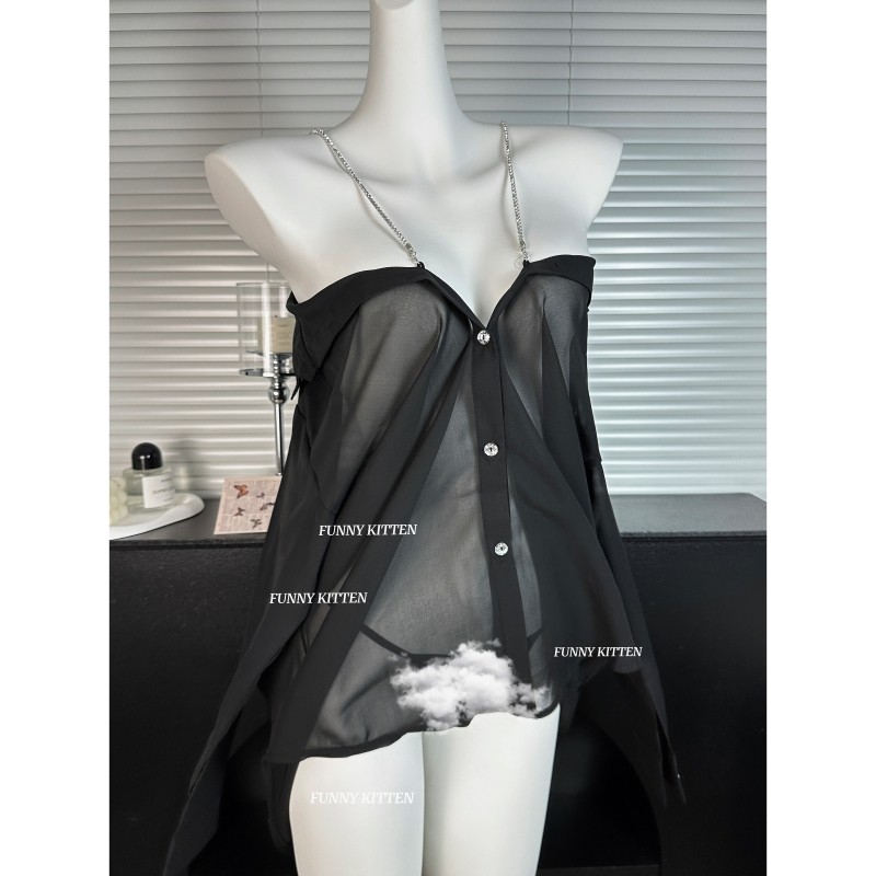 男女雪纺类性感衬衫吊带睡衣裙