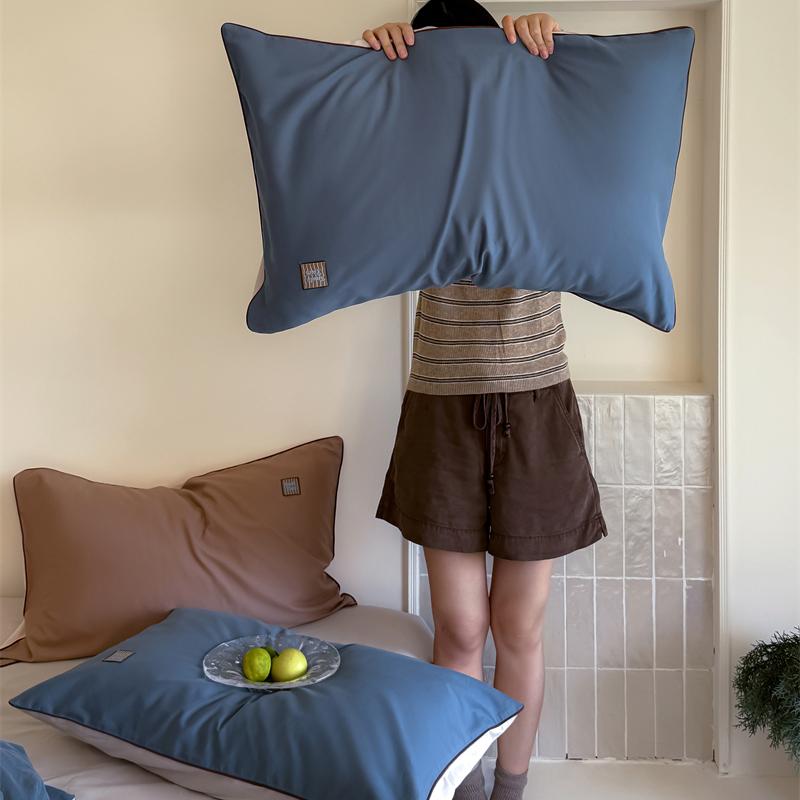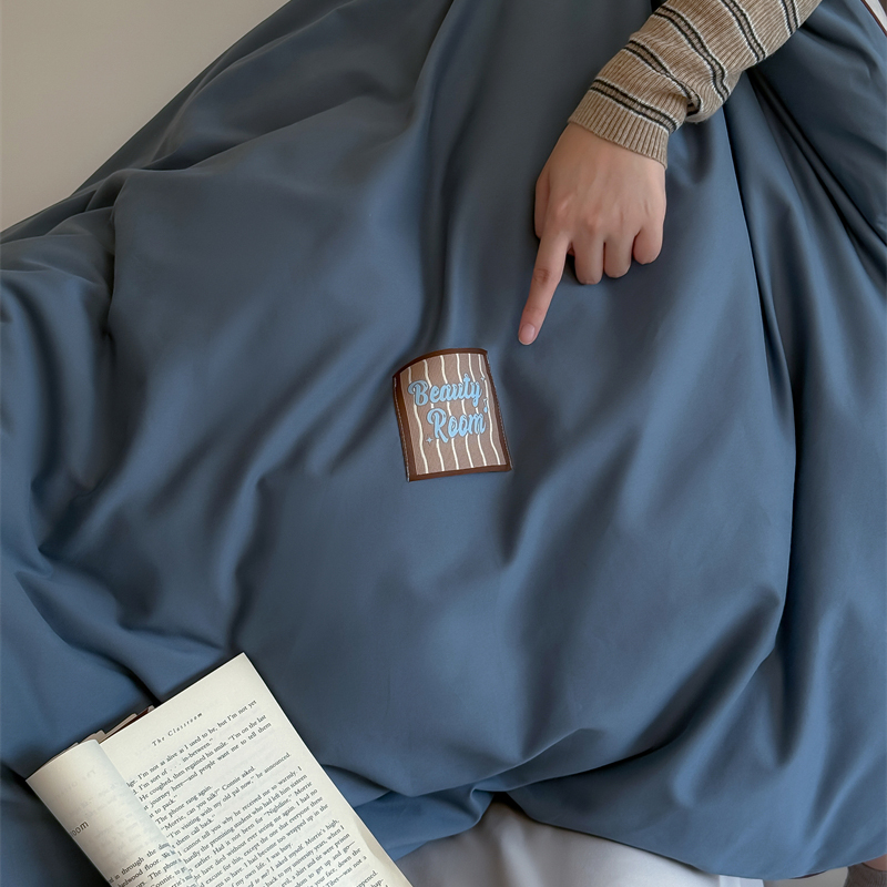 北欧风100s高支磨毛嵌绳青石蓝四件套全棉被套秋冬保暖1.5m1.8米