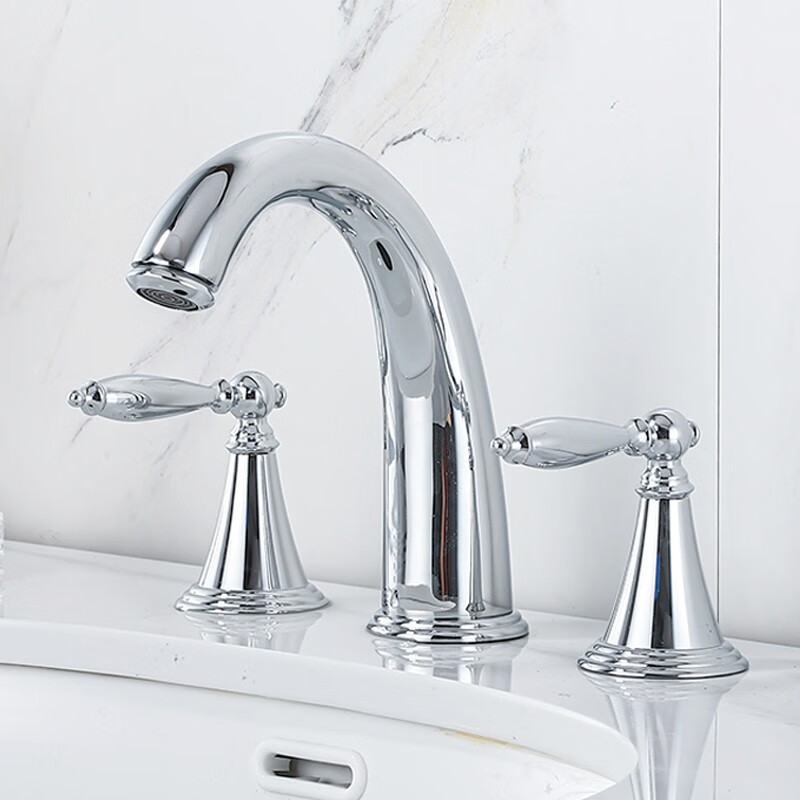 卫生间双把手分体龙头三件套浴室欧式全铜三孔面盆冷热水龙头防溅