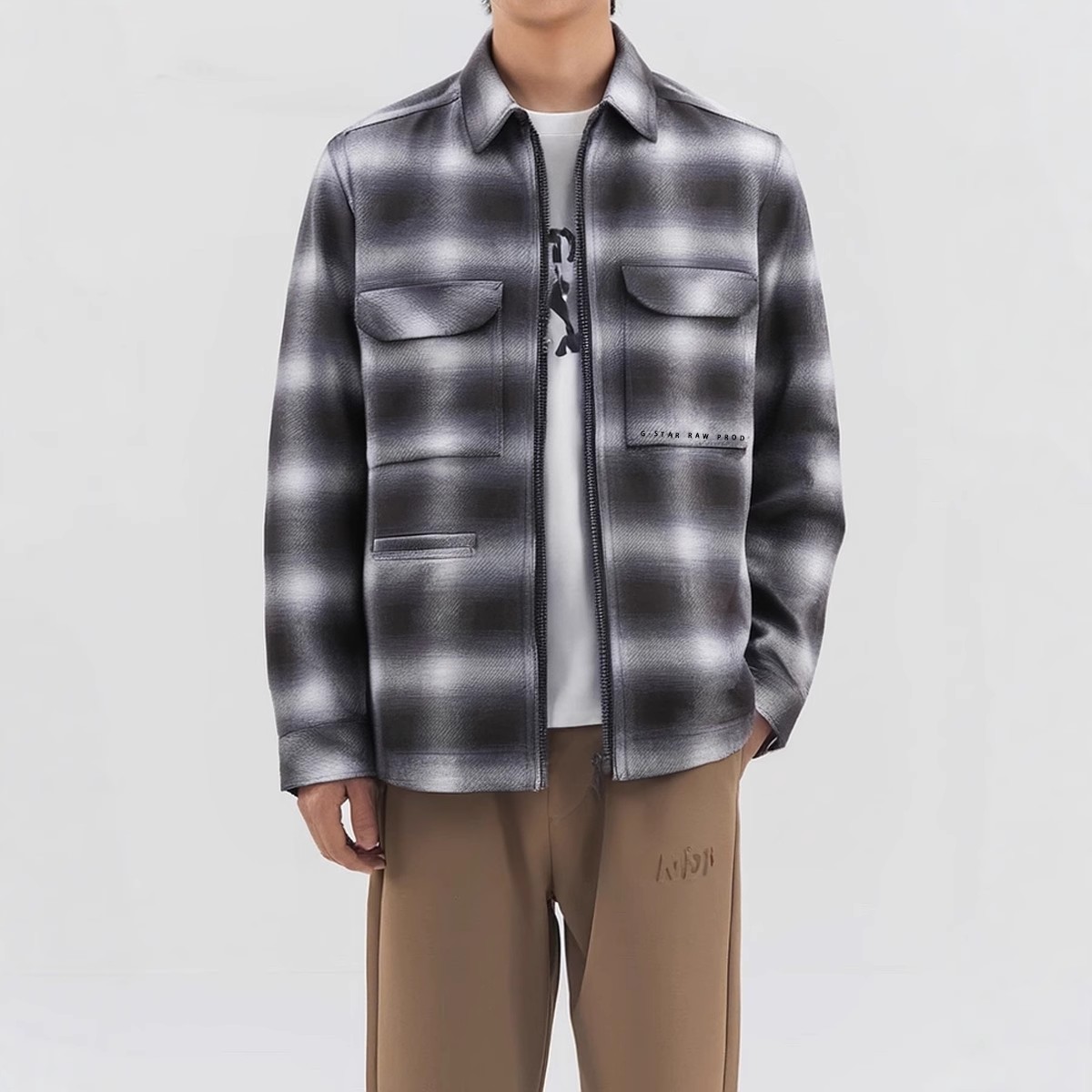 春款福利外套格子毛呢夹克男女上衣休闲翻领潮流通勤开衫茄克拉链